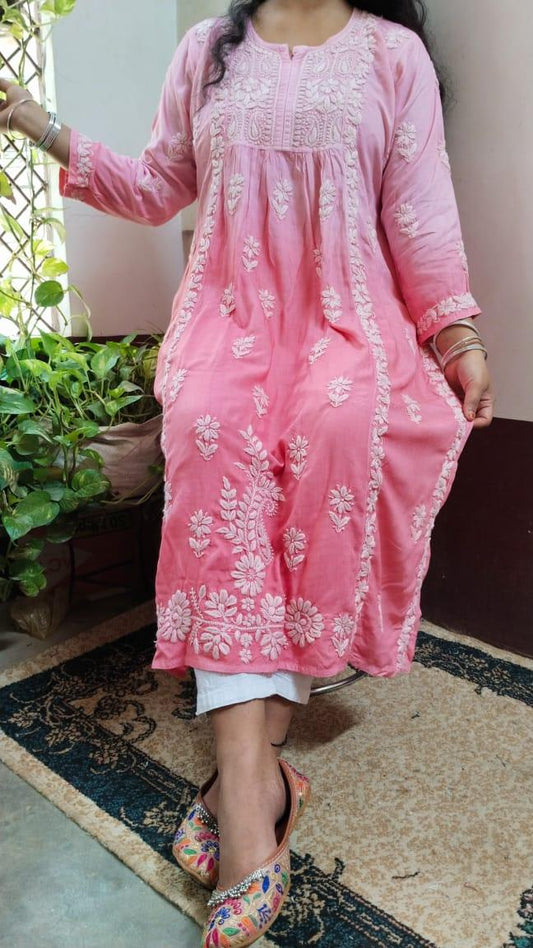 Baby pink Graceful Lucknow Chikankari Viscose Kurti 3 Pc Set