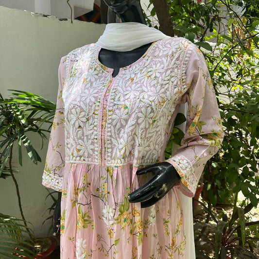 Baby Pink Elegant Viscose Lucknow Chikankari Handwork Ensemble (New)
