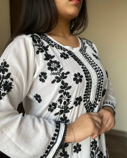 Black & White Premium Lucknow Chikankari Modal Kurti & Afghani Pant Set ā Handcrafted Elegance