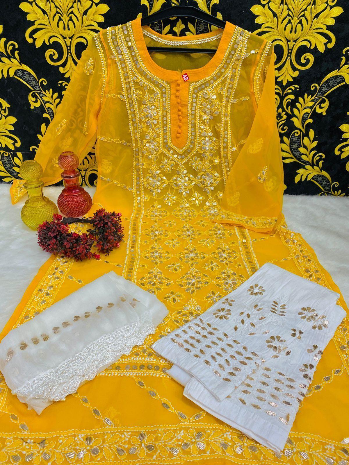 Yellow Georgette Gotta Patti Kurti Sharara Salwar Suit