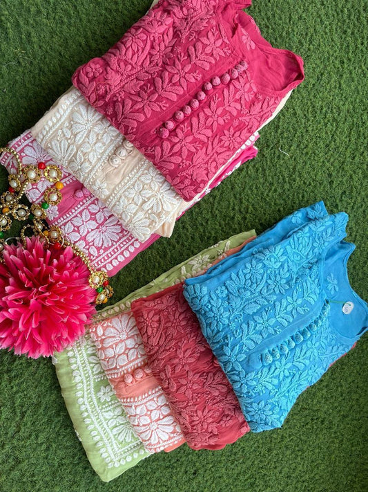 Explore the timeless artistry of Chikankari, a revered embroidery technique originating from Lucknow, India. With delicate threadwork adorning fine fabrics, Chikankari embodies elegance and tradition. Discover the intricate beauty of Chikankari Embroidery, meticulously handcrafted by skilled artisans. From graceful Chikankari Dresses and Kurtis to opulent Sarees and Lehengas, each garment tells a story of heritage and craftsmanship. Elevate your wardrobe with Chikankari Suits and Tops, perfect for both formal affairs and everyday wear. Immerse yourself in the allure of Chikankari Fabrics, from airy cotton to luxurious georgette, offering versatility and sophistication. Experience the timeless charm of Chikankari and indulge in its exquisite craftsmanship.