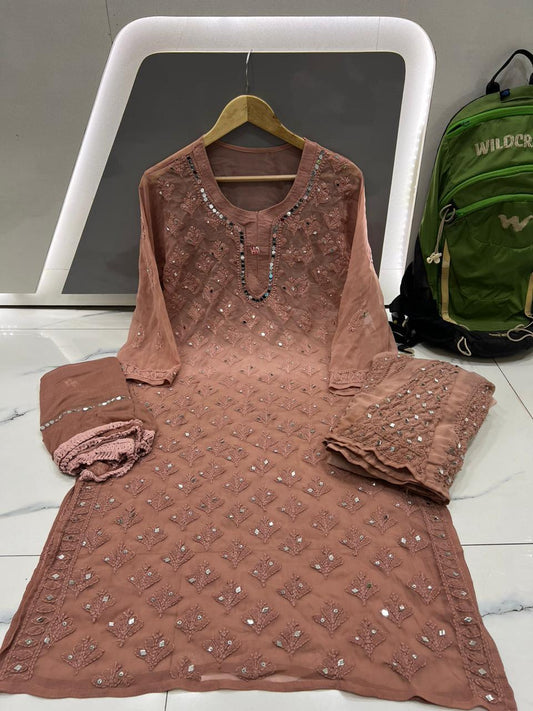 Light Pink Georgette Mirror Gala Booti Chikankari Set with Beautiful Handwork Embroidery
