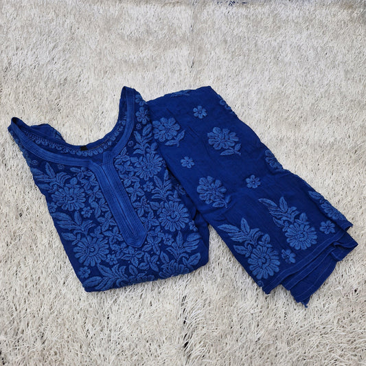 Royal Blue Chikankari Viscose Chic Short Top 3D work