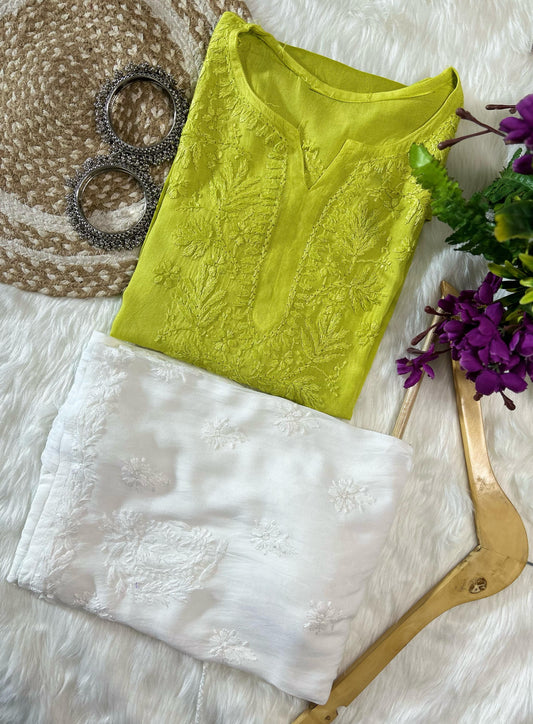 Parrot Green Chikankari Viscose Chic Short Top 3D work