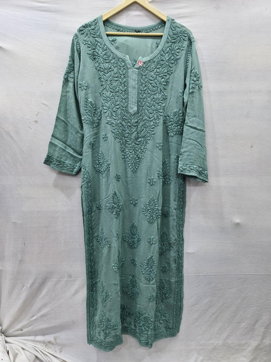 Pastel Green Elegant Viscose Daman Designer 3D Chikankari Long Kurti