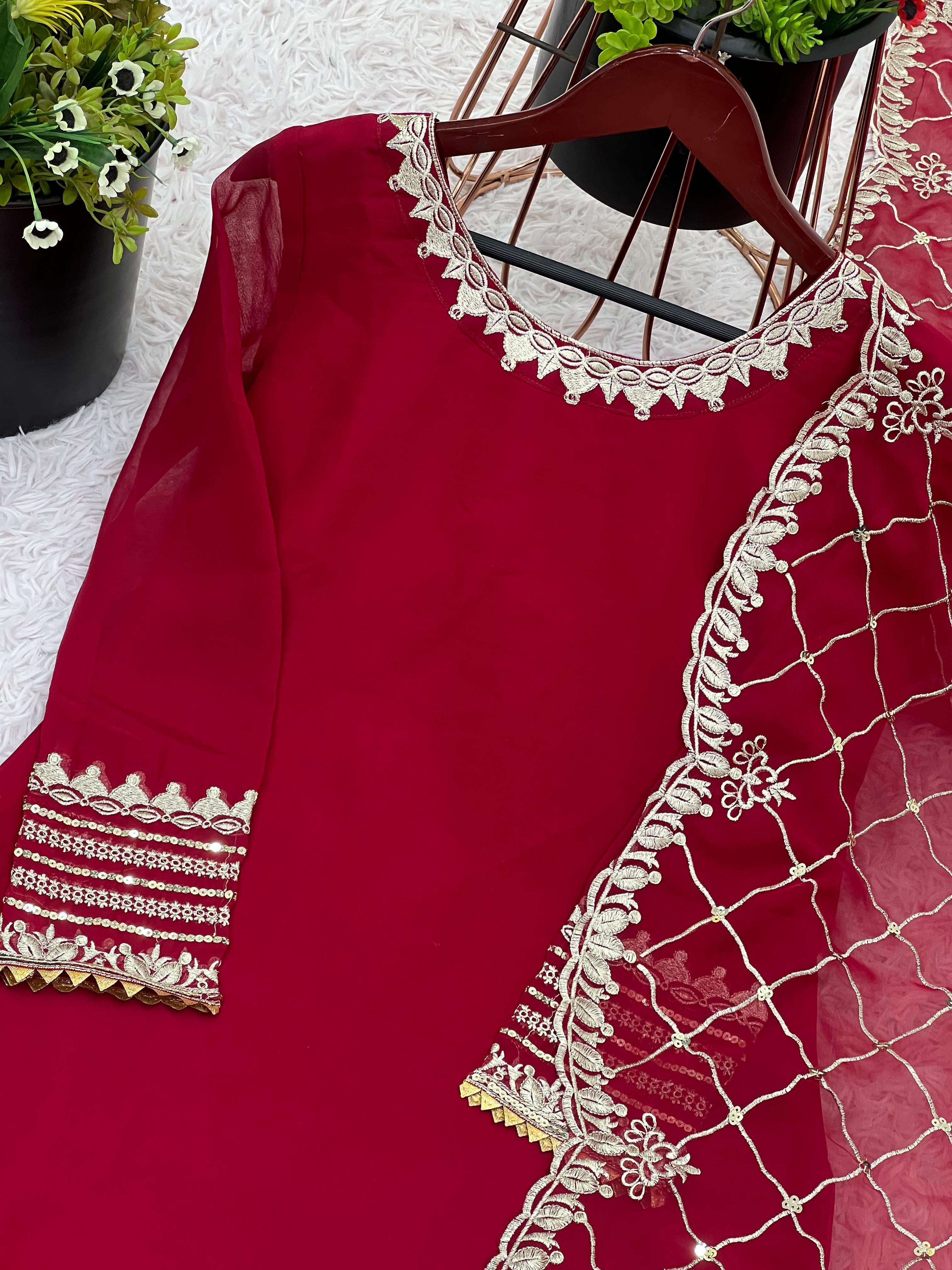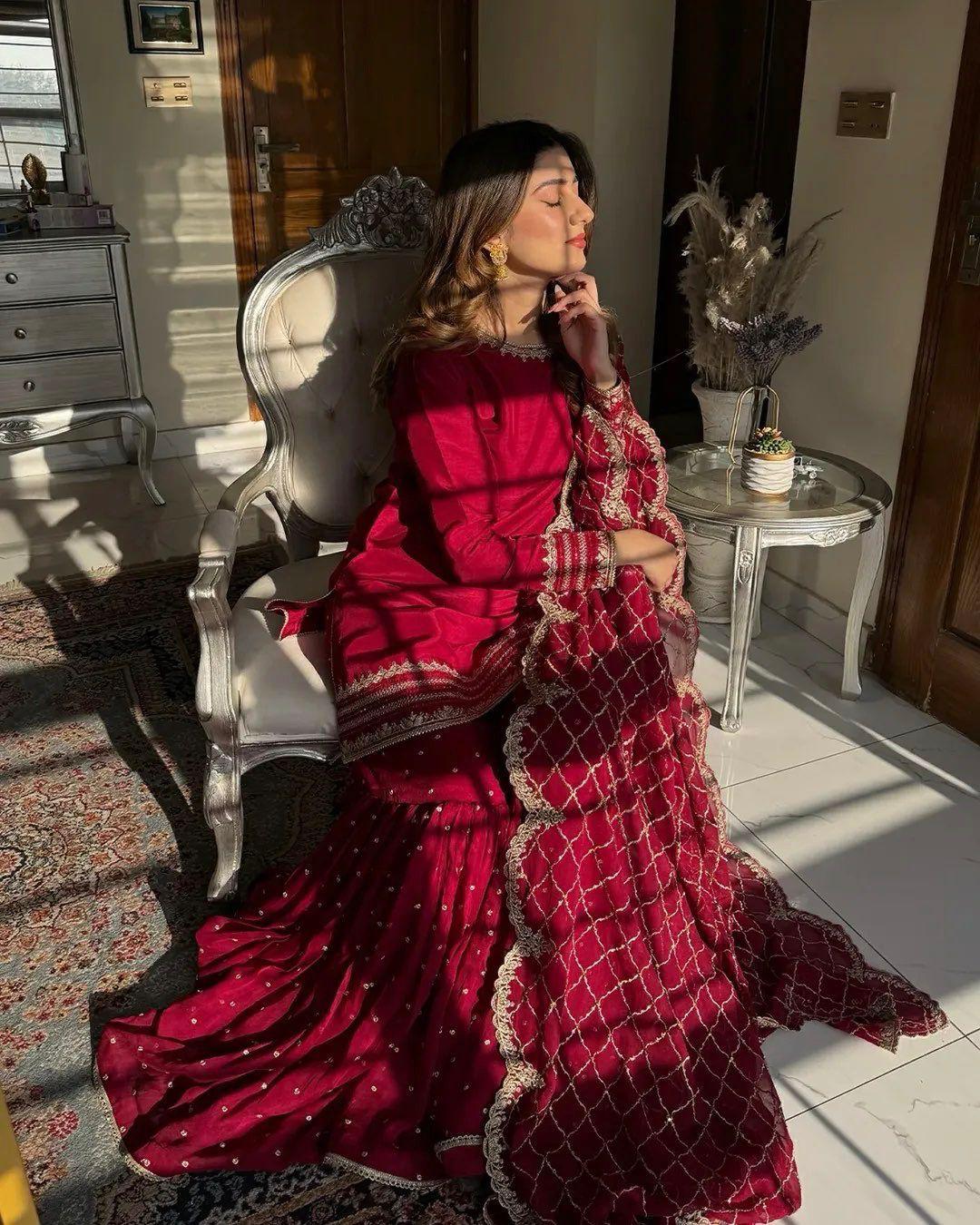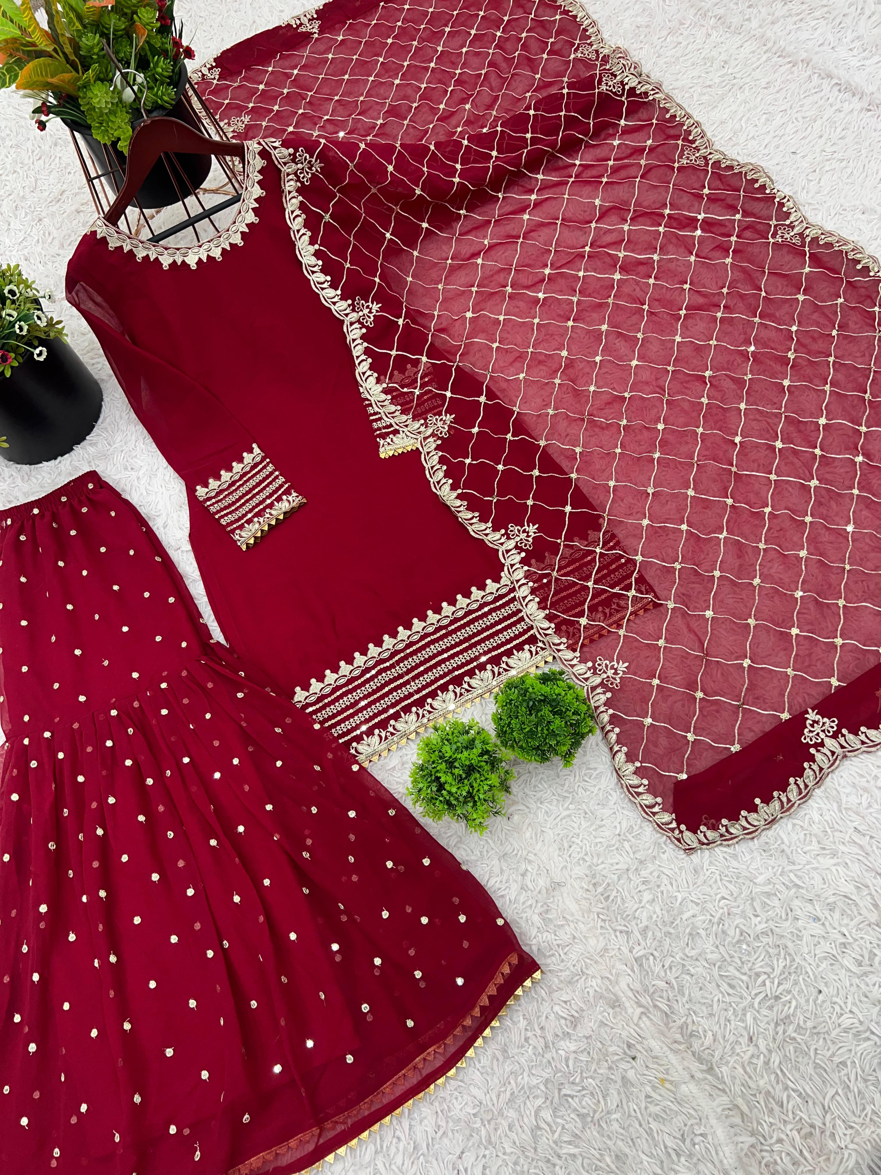 Red Ethereal Elegance Kurti Gharara Ensemble