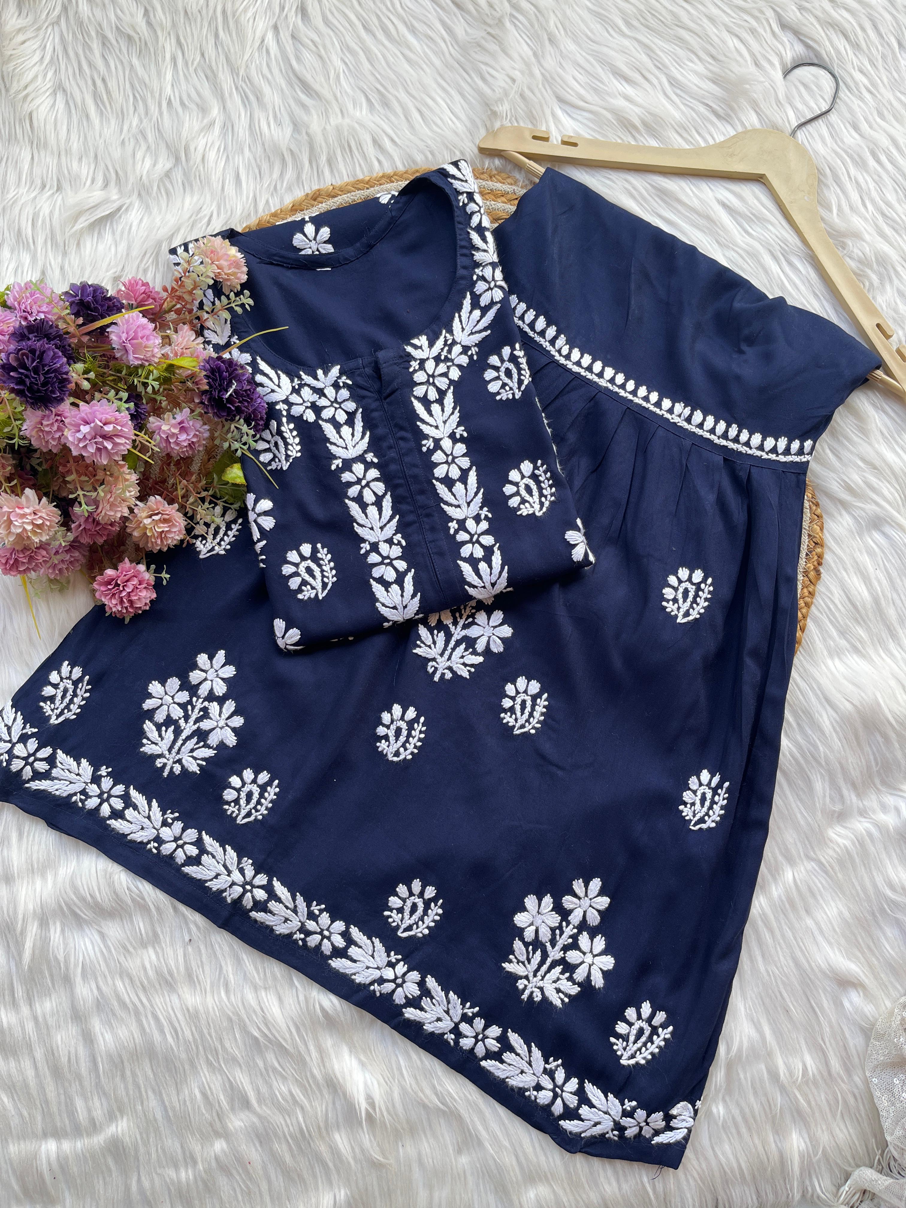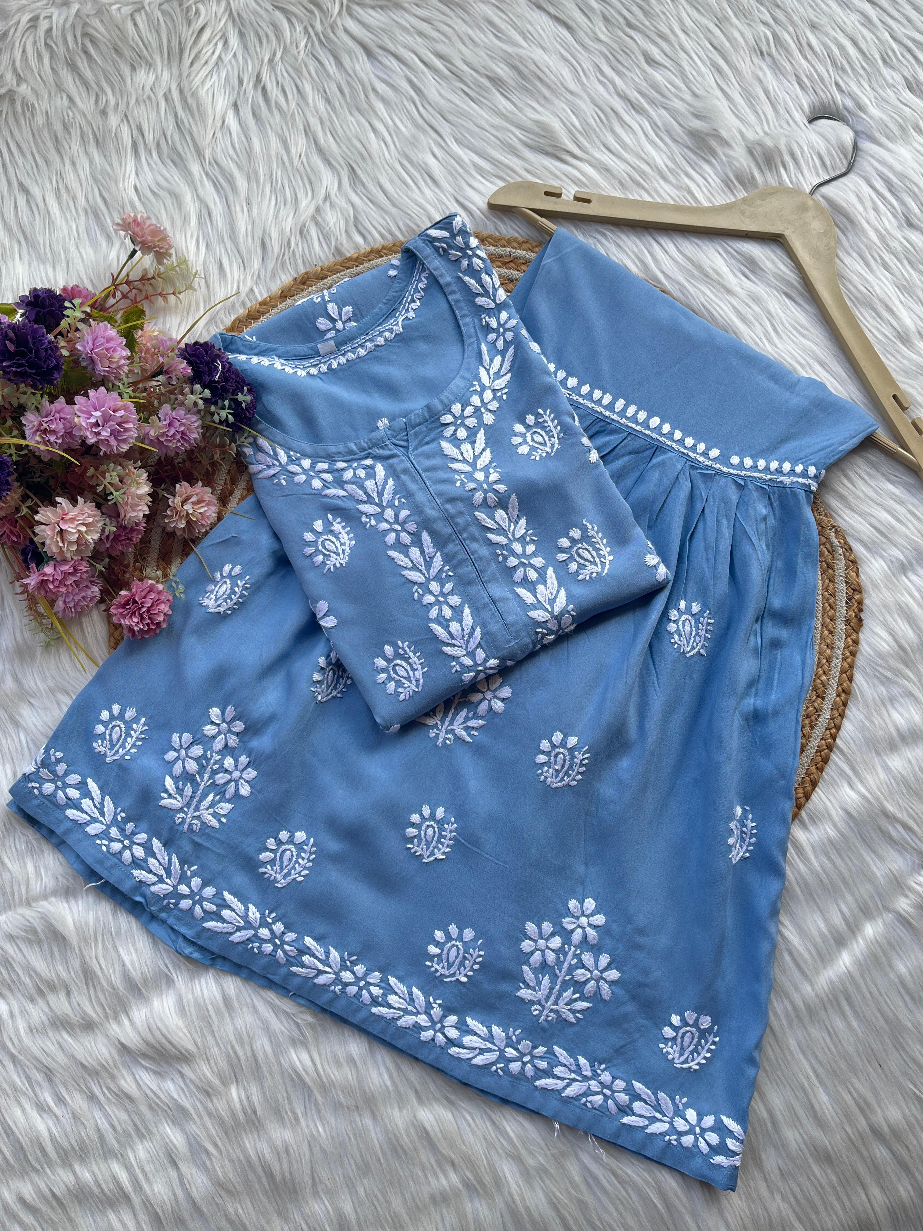 Blue Premium Modal Silk Chikankari Kurti and Gharara Set Limited Stock
