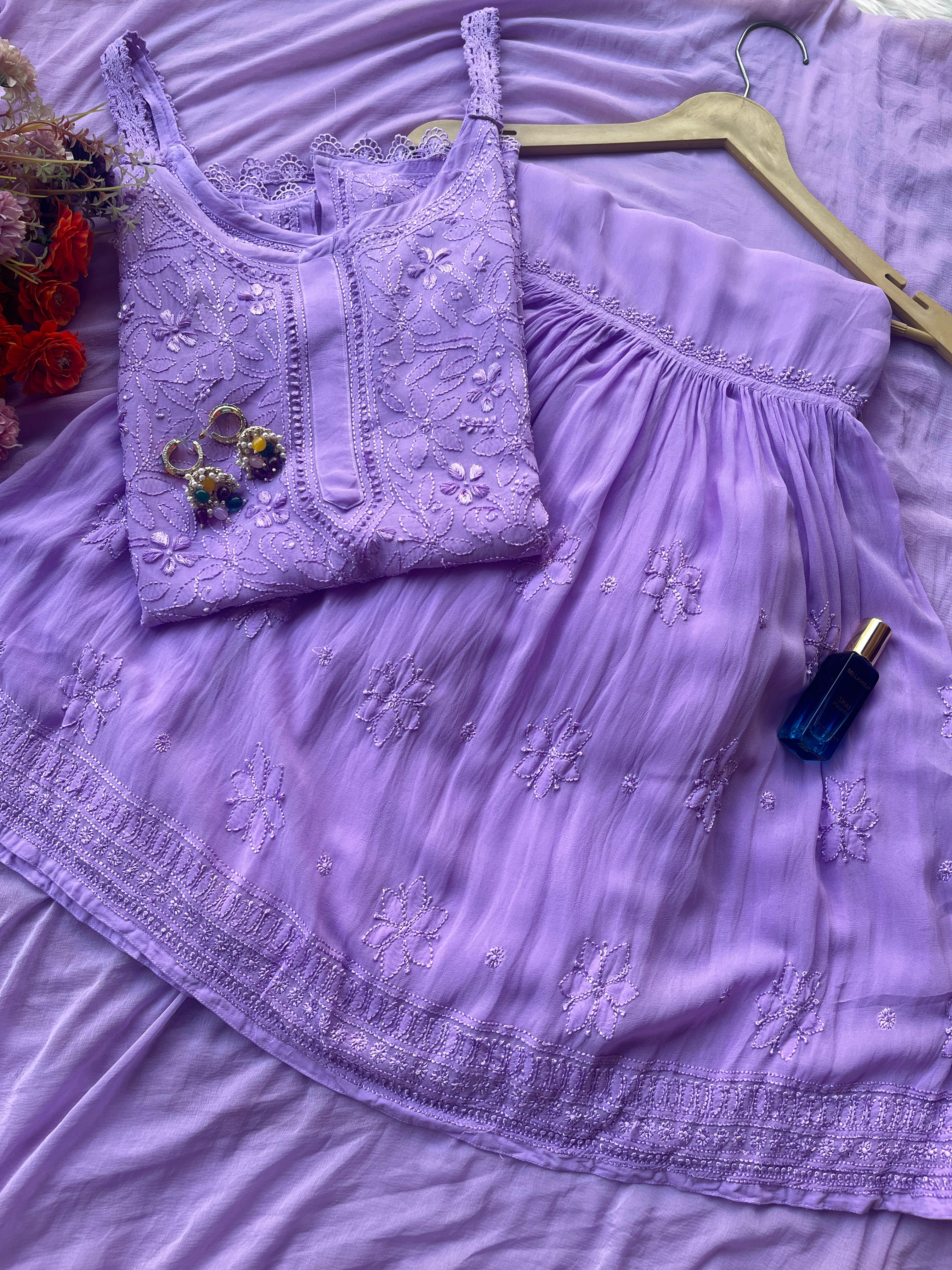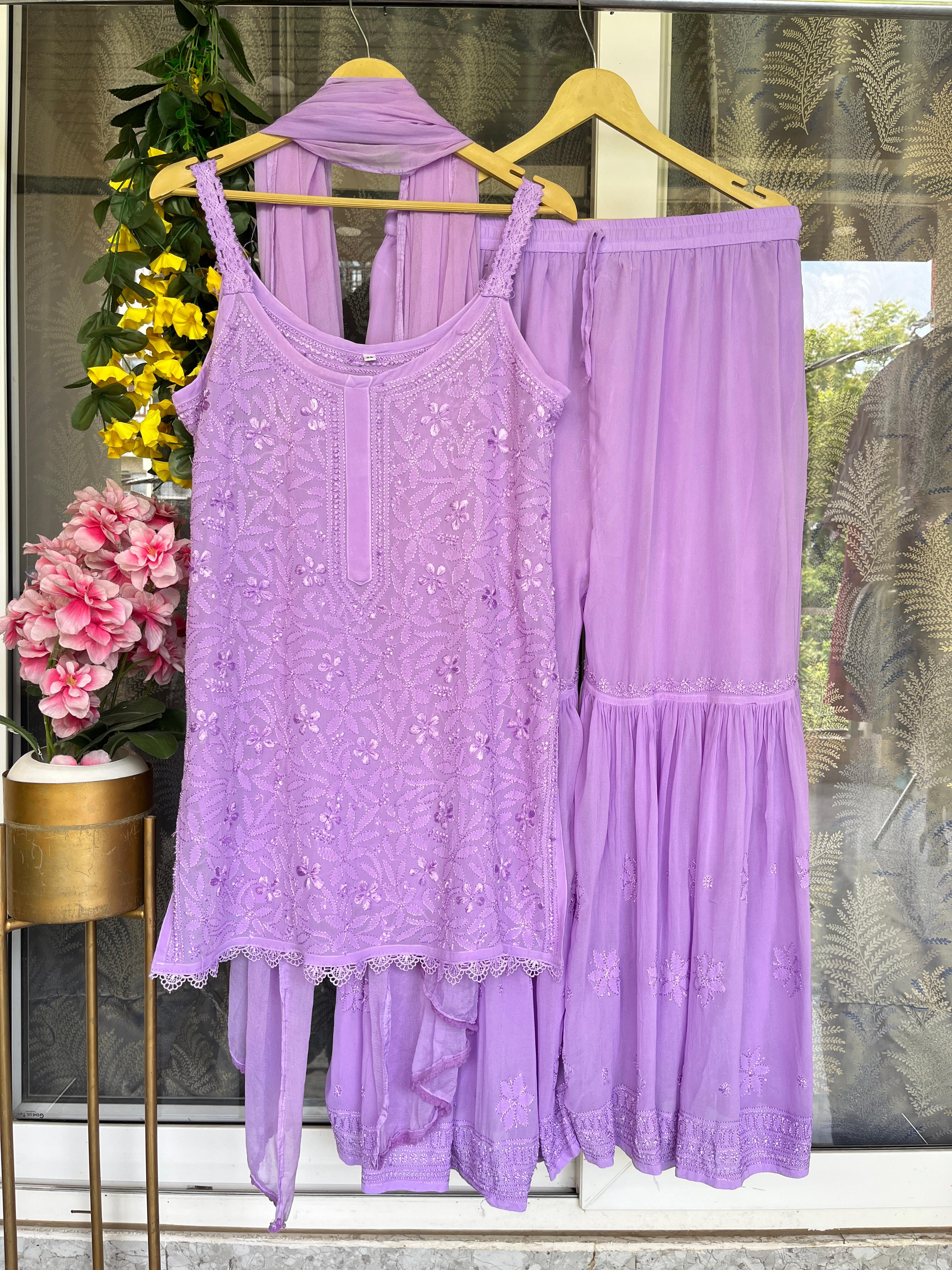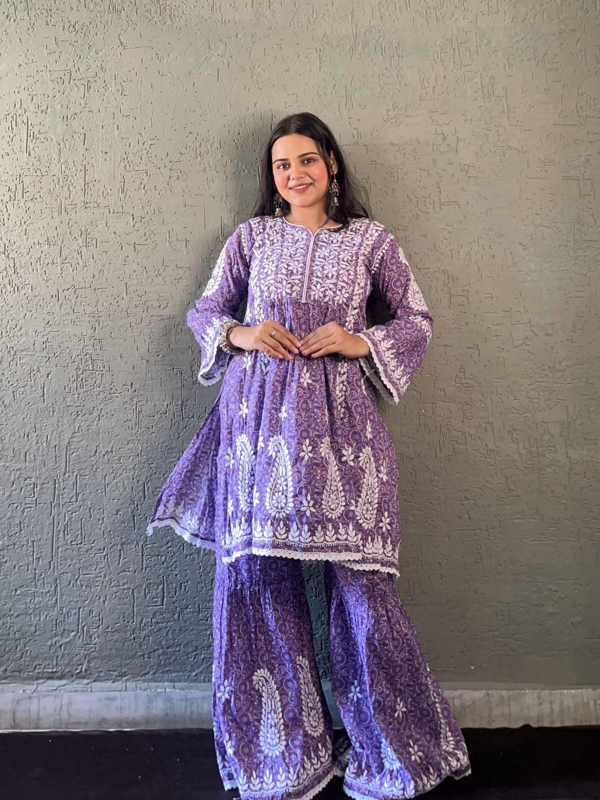 Lavendar Premium Kurti & Gharara Co-ord Set – Lucknow Chikankari Handwork