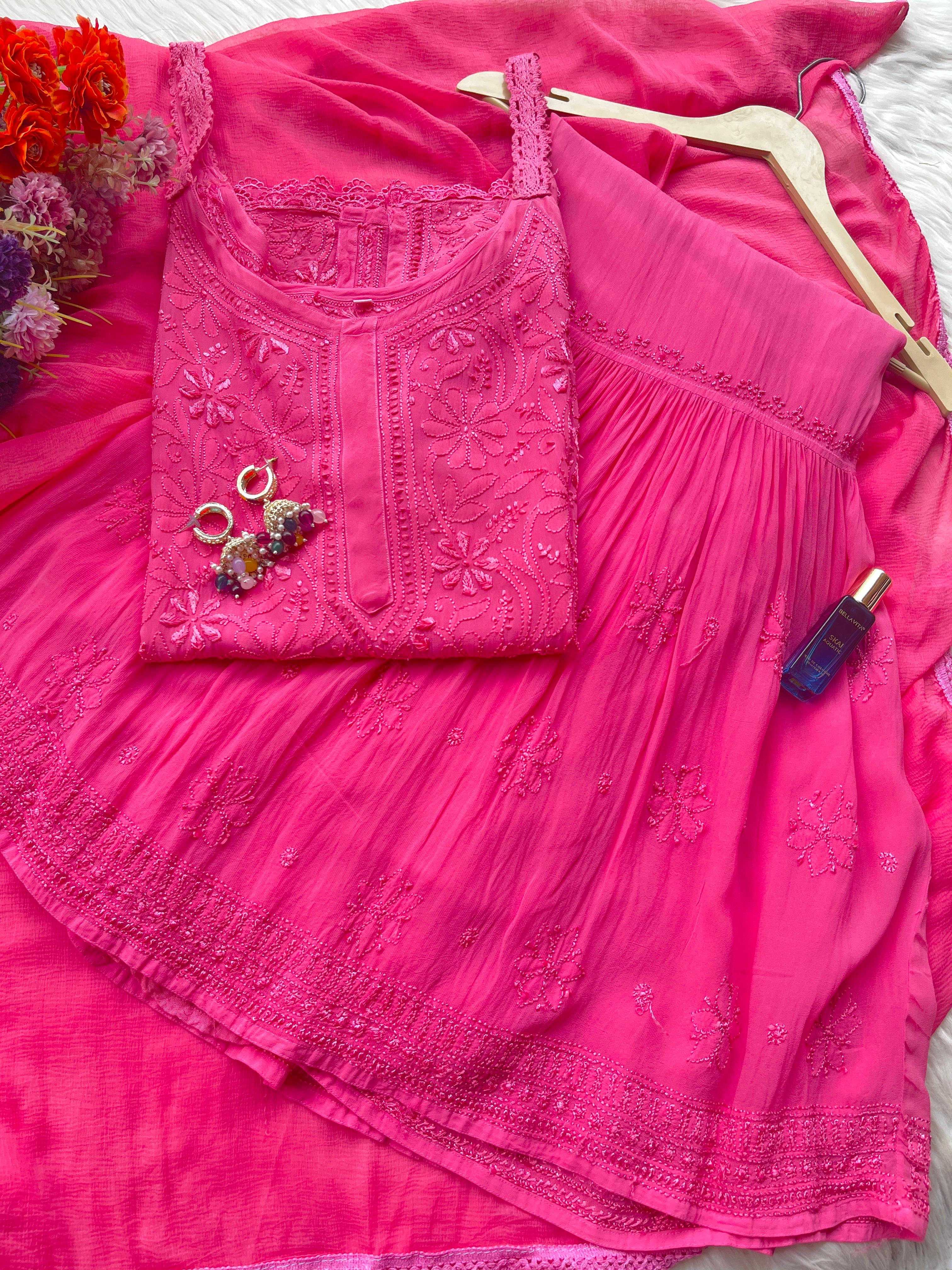 Pink Premium Modal Silk Chikankari Kurti and Gharara Set Limited Stock
