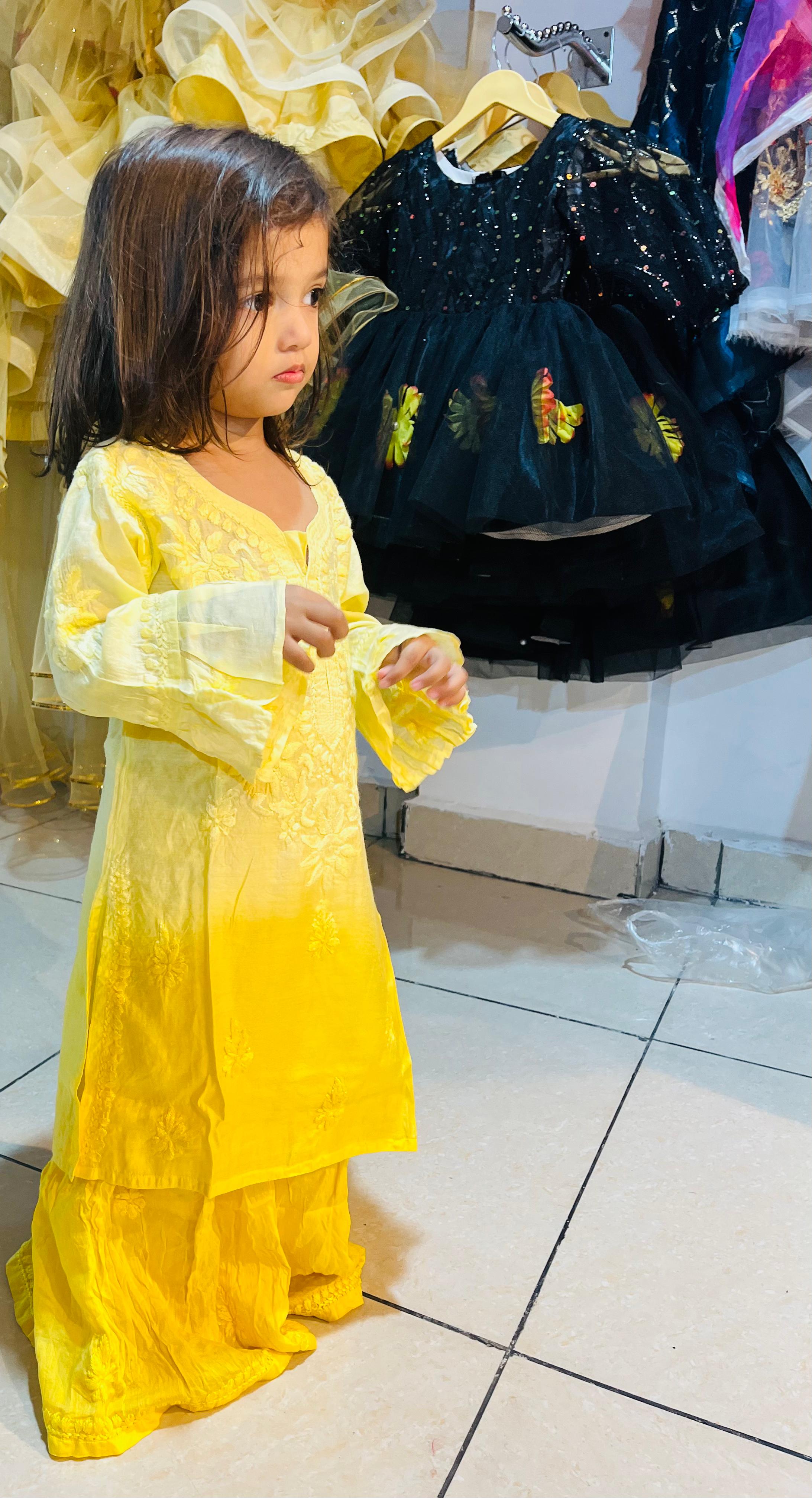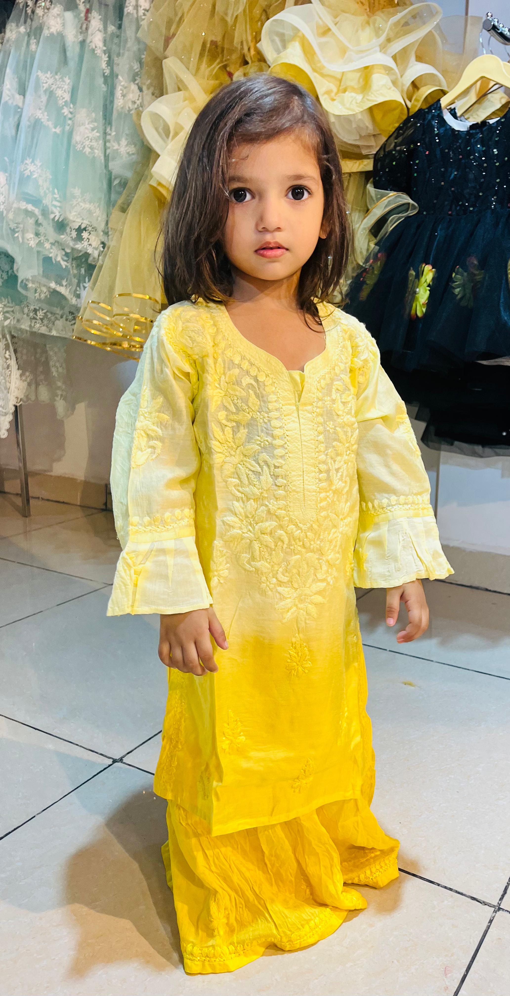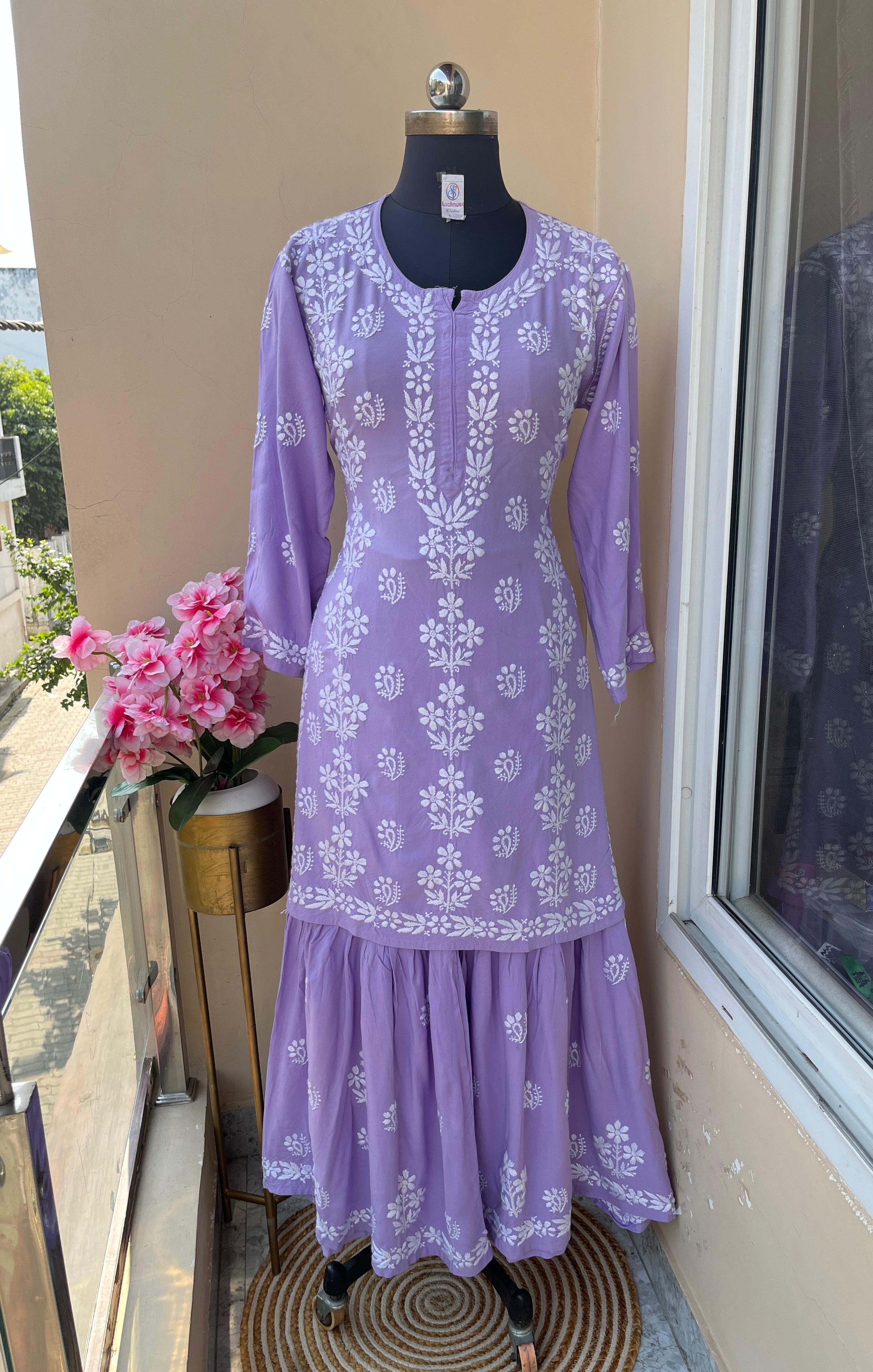 Peach Color Vivid V Lace Chikankari Gharara 3-Piece Set