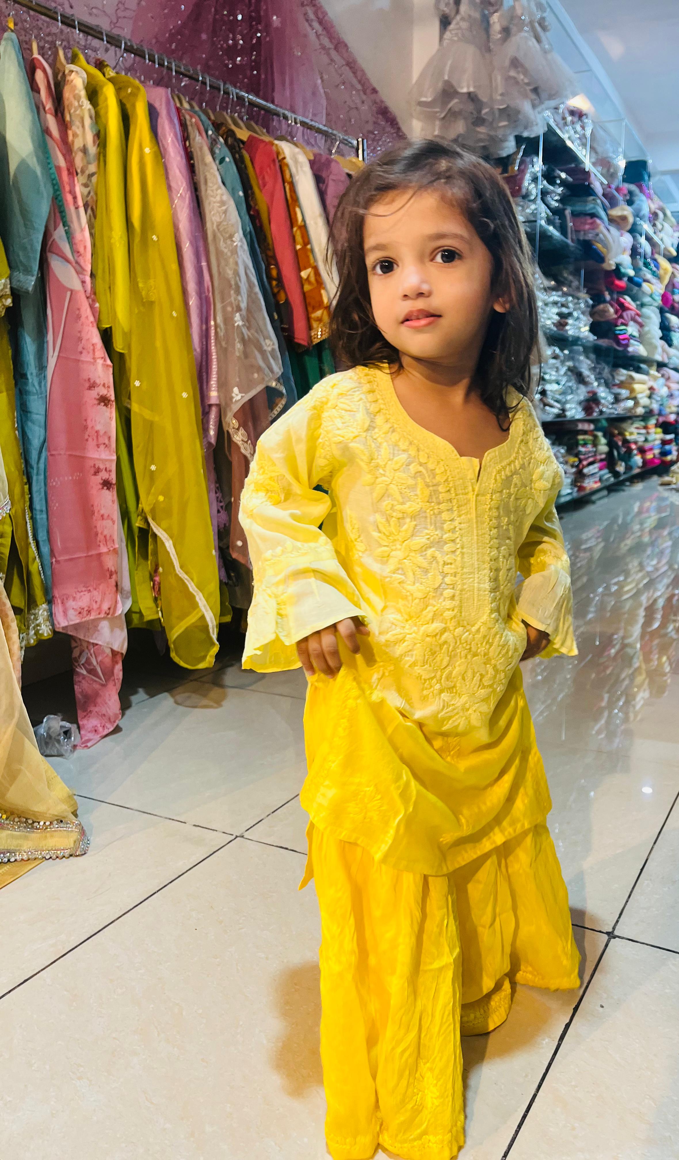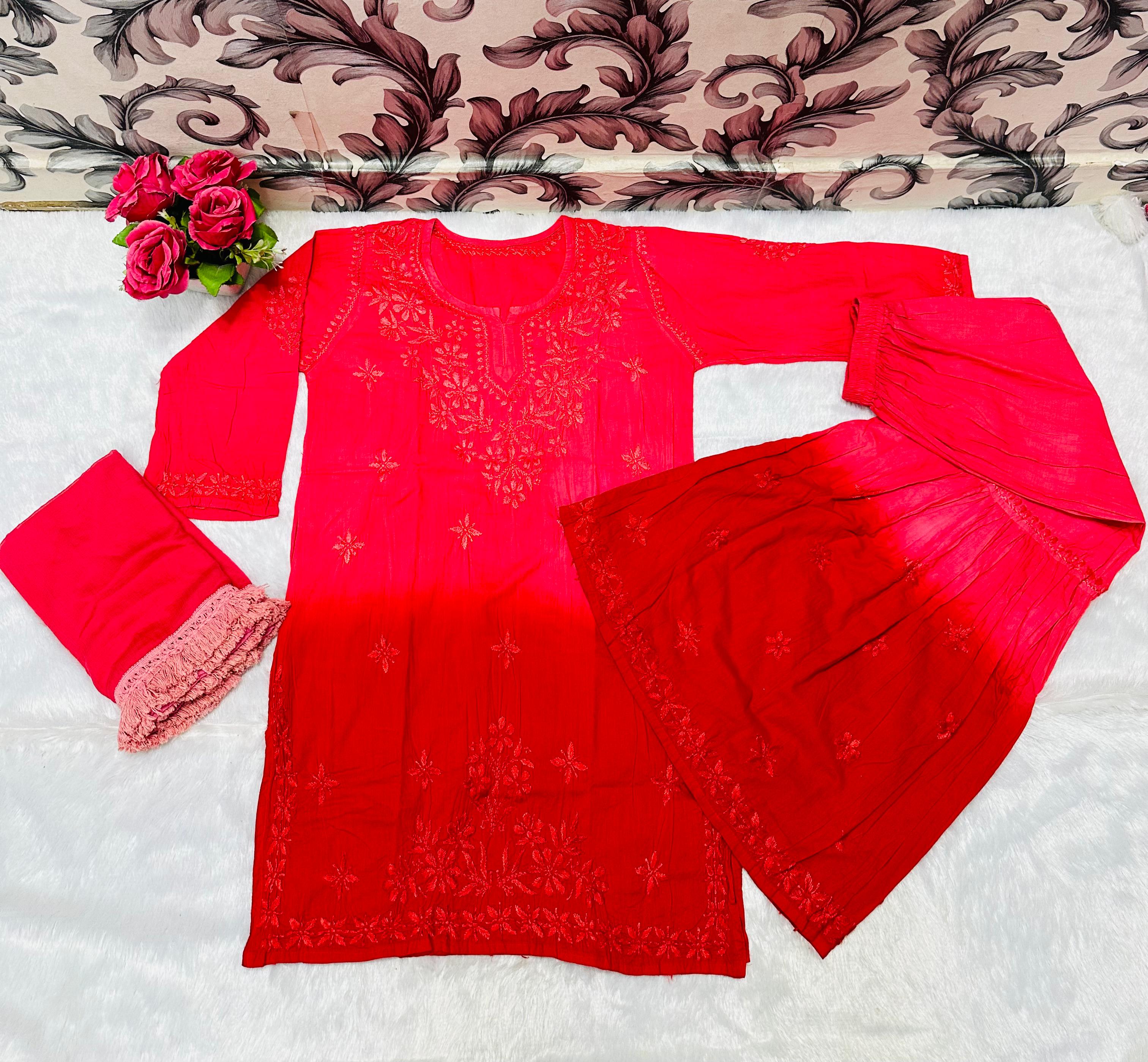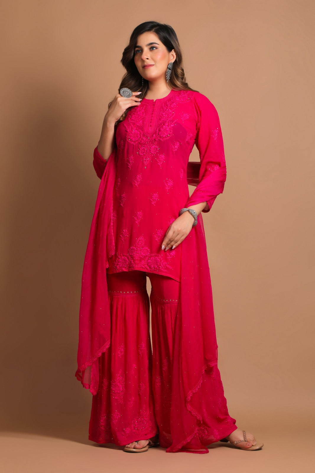 Pink Color Vivid V Lace Chikankari Gharara 3-Piece Set