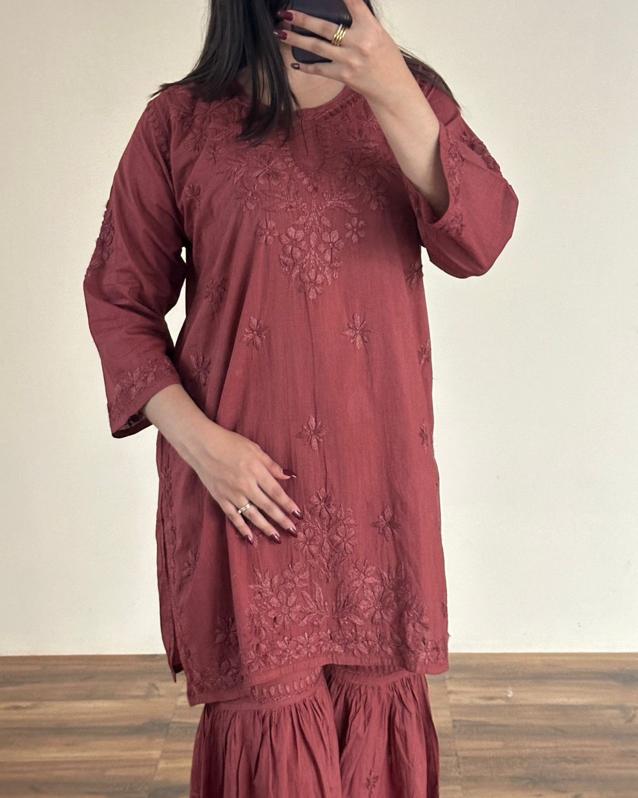 Maroon Ethereal Elegance Kurti Gharara Ensemble
