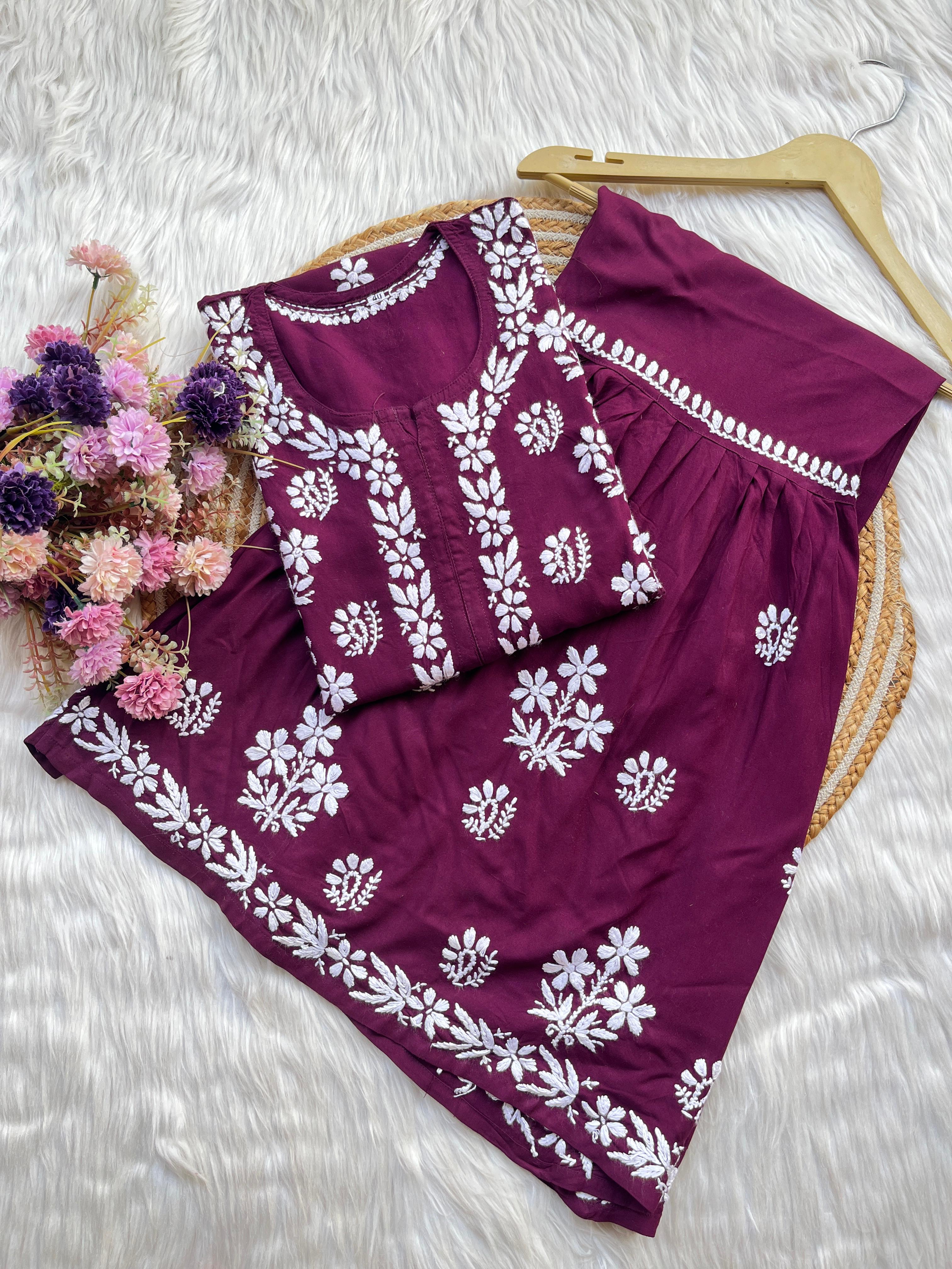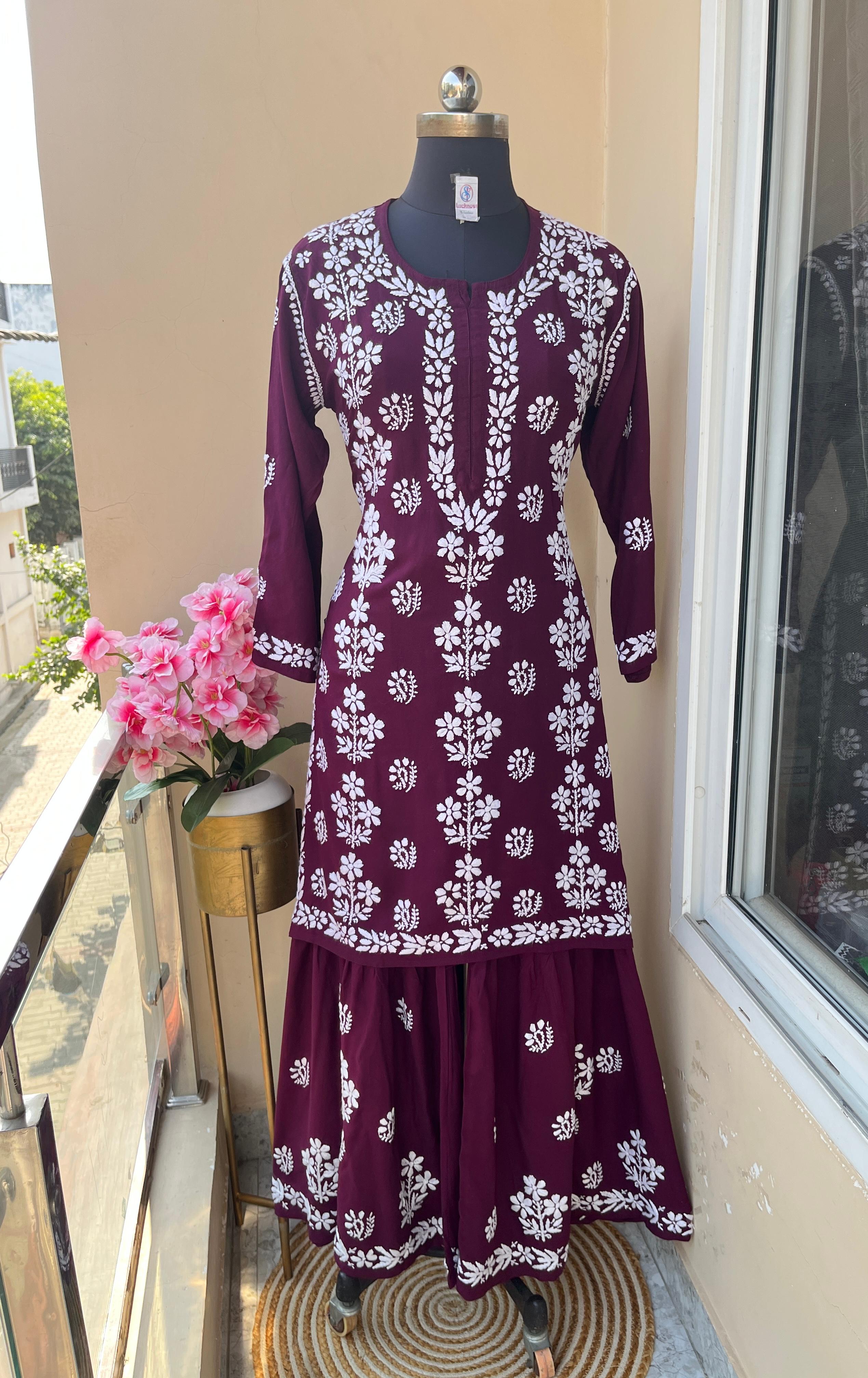 Wine Ethereal Elegance Kurti Gharara Ensemble
