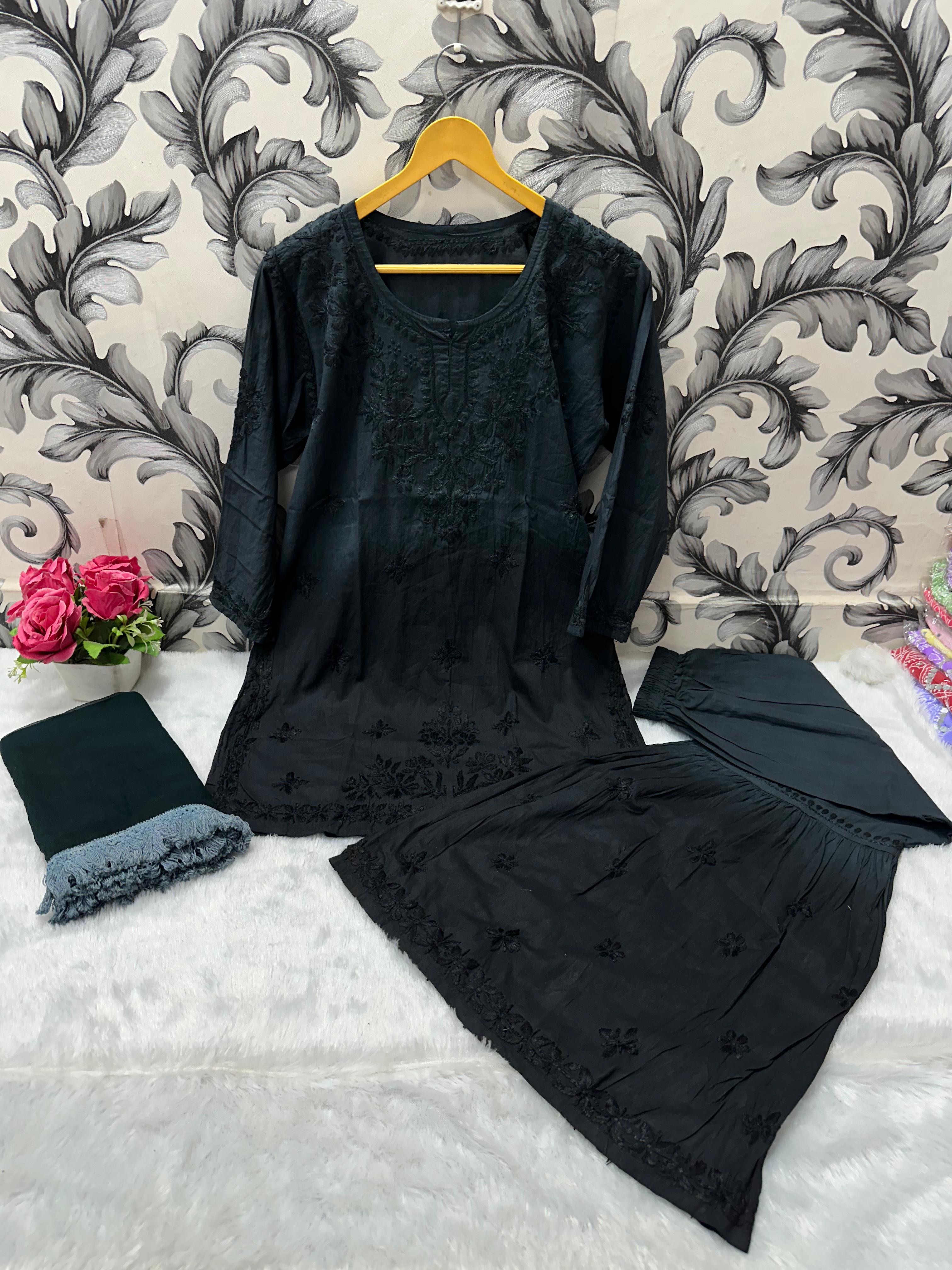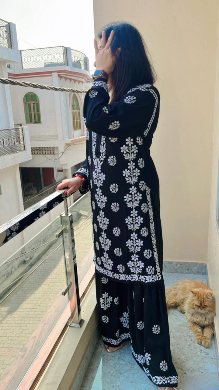 Beauty Black Ethereal Elegance Kurti Gharara Ensemble