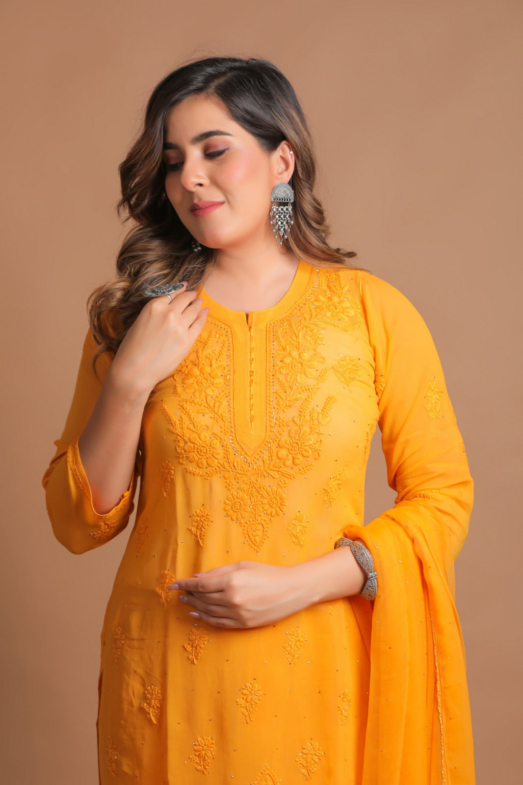 Explore the timeless artistry of Chikankari, a revered embroidery technique originating from Lucknow, India. With delicate threadwork adorning fine fabrics, Chikankari embodies elegance and tradition. Discover the intricate beauty of Chikankari Embroidery, meticulously handcrafted by skilled artisans. From graceful Chikankari Dresses and Kurtis to opulent Sarees and Lehengas, each garment tells a story of heritage and craftsmanship. Elevate your wardrobe with Chikankari Suits and Tops, perfect for both formal affairs and everyday wear. Immerse yourself in the allure of Chikankari Fabrics, from airy cotton to luxurious georgette, offering versatility and sophistication. Experience the timeless charm of Chikankari and indulge in its exquisite craftsmanship.
