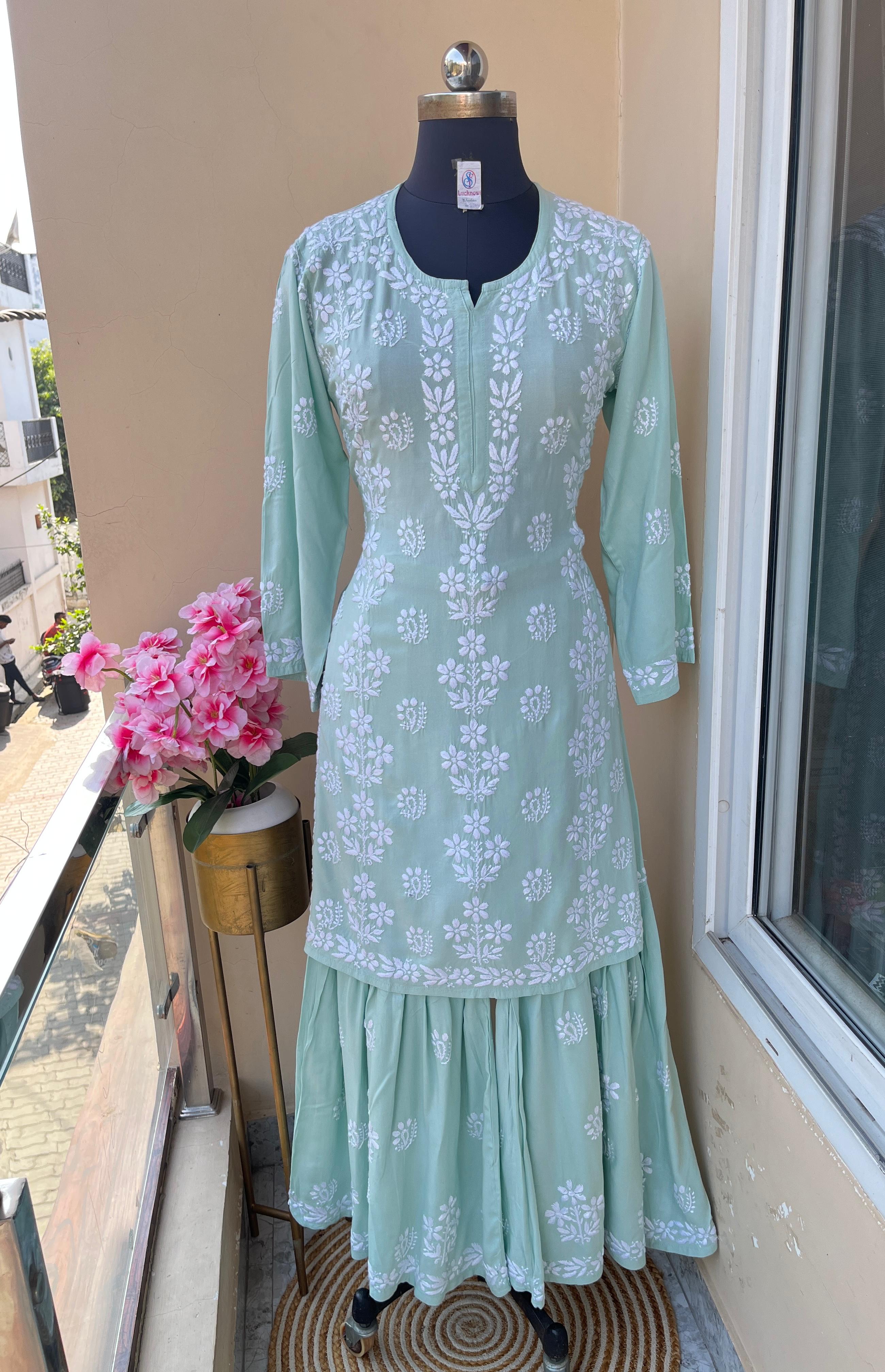 Green Ethereal Elegance Kurti Gharara Ensemble