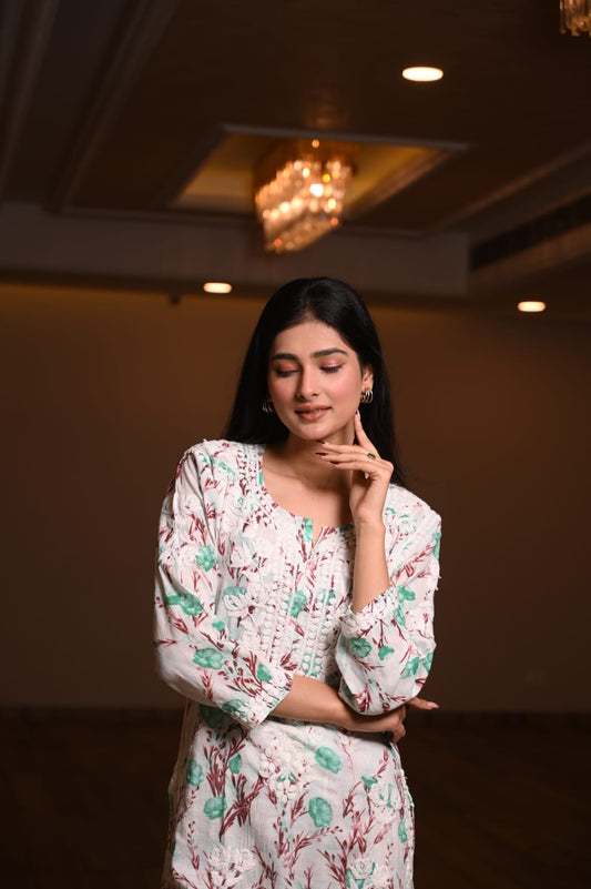 Majenta Exclusive Lucknow Chikankari Cotton Kurti & Pant Co-ord Set