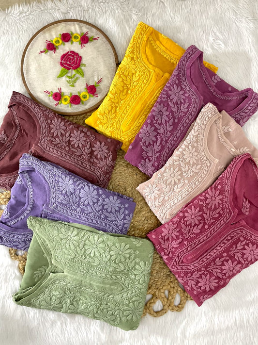 Explore the timeless artistry of Chikankari, a revered embroidery technique originating from Lucknow, India. With delicate threadwork adorning fine fabrics, Chikankari embodies elegance and tradition. Discover the intricate beauty of Chikankari Embroidery, meticulously handcrafted by skilled artisans. From graceful Chikankari Dresses and Kurtis to opulent Sarees and Lehengas, each garment tells a story of heritage and craftsmanship. Elevate your wardrobe with Chikankari Suits and Tops, perfect for both formal affairs and everyday wear. Immerse yourself in the allure of Chikankari Fabrics, from airy cotton to luxurious georgette, offering versatility and sophistication. Experience the timeless charm of Chikankari and indulge in its exquisite craftsmanship.