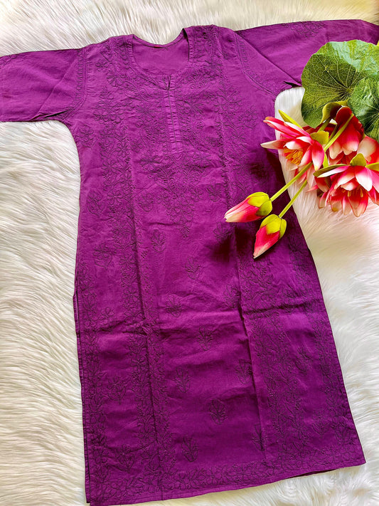 Purple PLUS SIZE PREMIUM Lucknow Chikankari Handcrafted Rayon Kurti & Palazzo Set