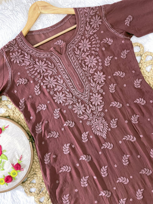 Browm Premium Lucknowi Chikankari Tone-on-Tone Kurti and Pant Set