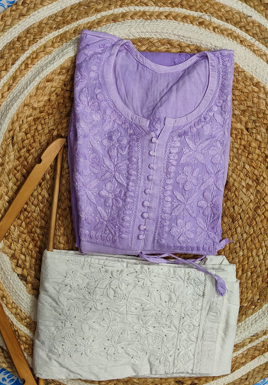 Lavendar Fancy Chikankari Cotton Ombre Gown kurti and Pant Set