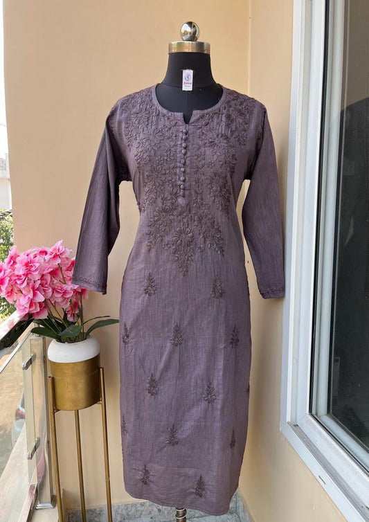 Chocolate Brown Cotton Chikankari Hand Work Kurti Pant Sets