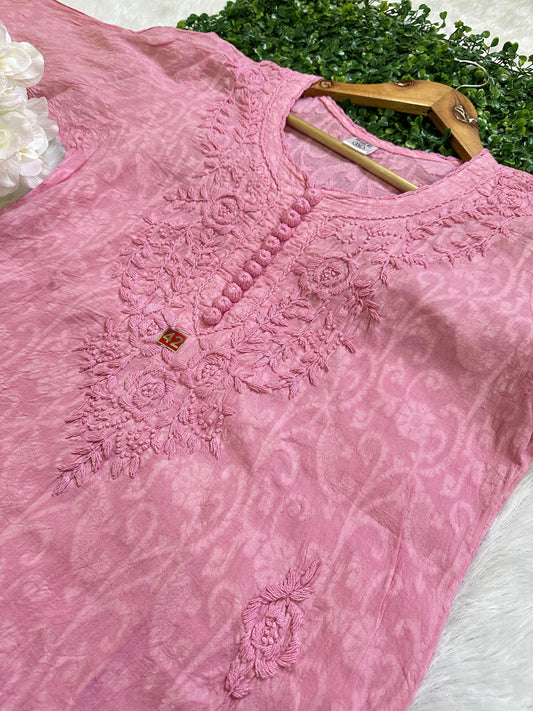 Magenta Pink Cotton Chikankari Hand Work Kurti Pant Sets
