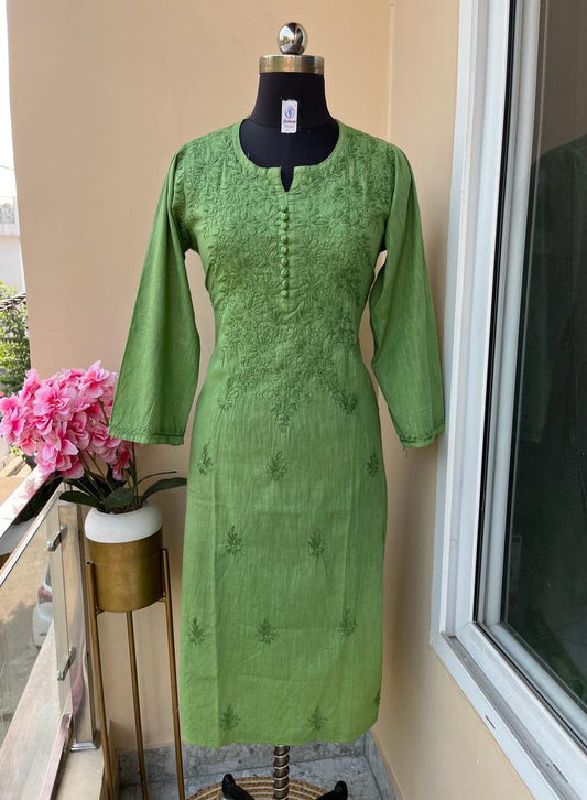 Neon Green 🌸 Exclusive Dye Dobby Cotton Kurti Set with Hand Thread Work 🌸