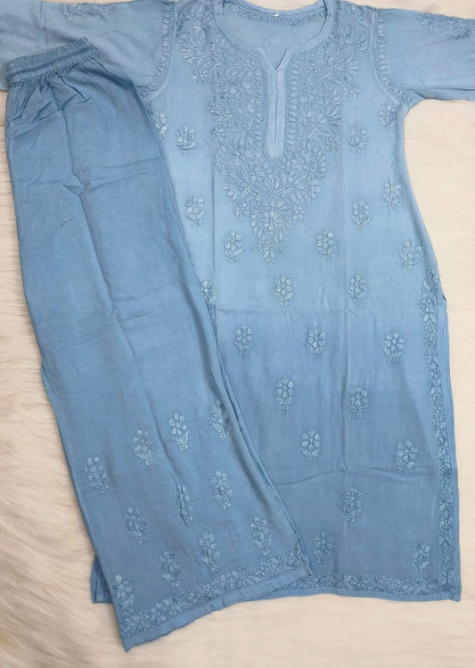 Light Blue Elegance Unveiled Modal Chikankari Ensemble