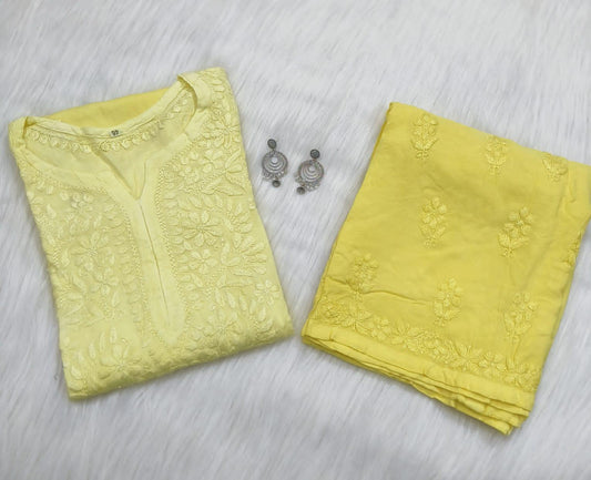 Light Yellow Elegance Unveiled Modal Chikankari Ensemble