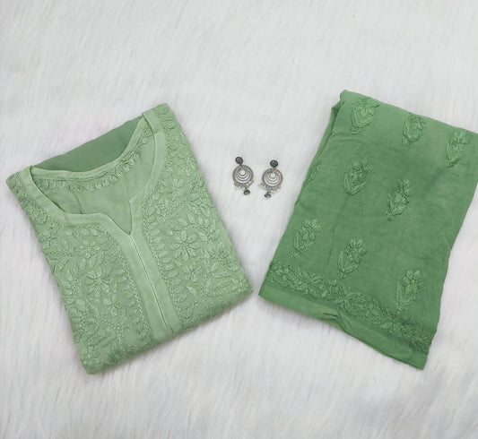 Green Vogue Chikankari Long Kurti and Pant Ensemble