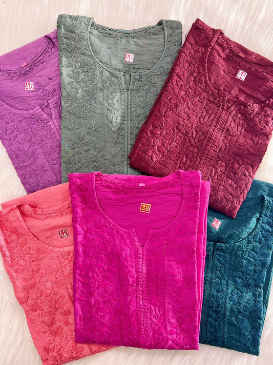 Explore the timeless artistry of Chikankari, a revered embroidery technique originating from Lucknow, India. With delicate threadwork adorning fine fabrics, Chikankari embodies elegance and tradition. Discover the intricate beauty of Chikankari Embroidery, meticulously handcrafted by skilled artisans. From graceful Chikankari Dresses and Kurtis to opulent Sarees and Lehengas, each garment tells a story of heritage and craftsmanship. Elevate your wardrobe with Chikankari Suits and Tops, perfect for both formal affairs and everyday wear. Immerse yourself in the allure of Chikankari Fabrics, from airy cotton to luxurious georgette, offering versatility and sophistication. Experience the timeless charm of Chikankari and indulge in its exquisite craftsmanship.
