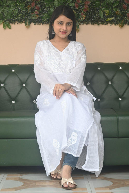 Timeless White Kota Doria Cotton Chikankari Kurti