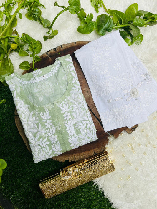 Tranquil Elegance: Light Green Chikankari Kurti in Mulmul Cotton