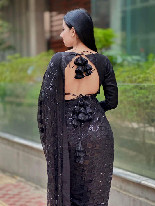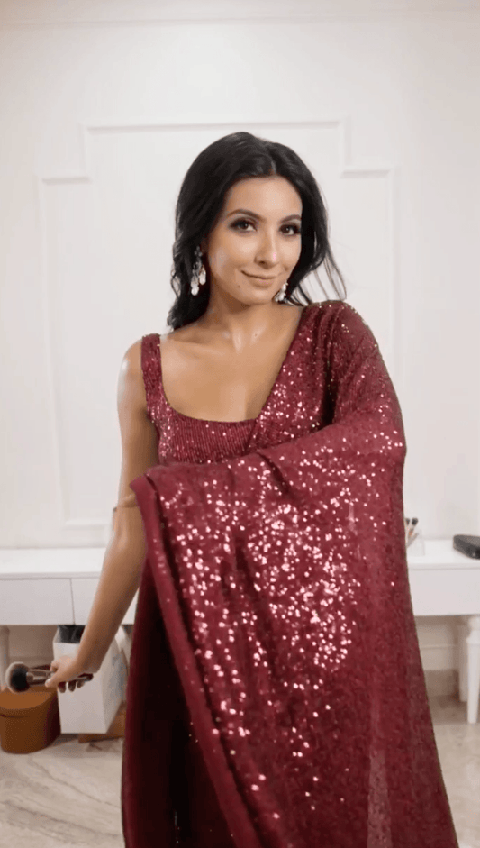 Maroon Georgette Sequin Work Saree with Banglori Silk Blouse