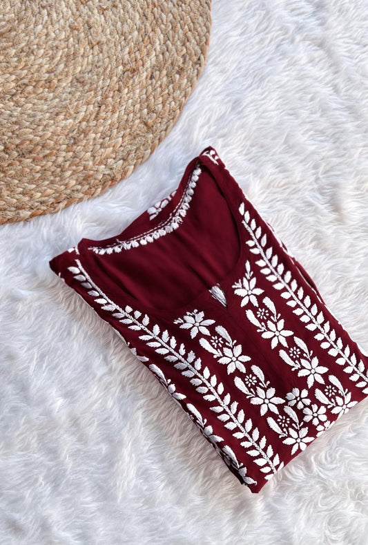 Maroon Royal Elegance 3D Viscose Premium Quality Chikankari Kurti