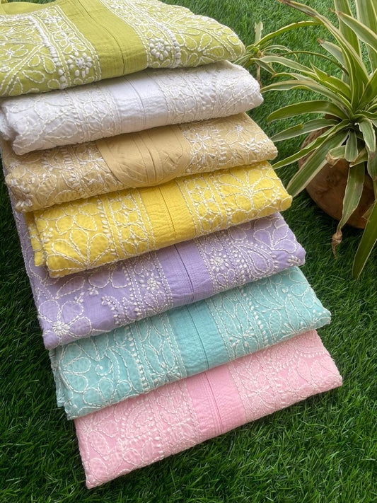 Explore the timeless artistry of Chikankari, a revered embroidery technique originating from Lucknow, India. With delicate threadwork adorning fine fabrics, Chikankari embodies elegance and tradition. Discover the intricate beauty of Chikankari Embroidery, meticulously handcrafted by skilled artisans. From graceful Chikankari Dresses and Kurtis to opulent Sarees and Lehengas, each garment tells a story of heritage and craftsmanship. Elevate your wardrobe with Chikankari Suits and Tops, perfect for both formal affairs and everyday wear. Immerse yourself in the allure of Chikankari Fabrics, from airy cotton to luxurious georgette, offering versatility and sophistication. Experience the timeless charm of Chikankari and indulge in its exquisite craftsmanship.