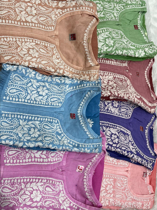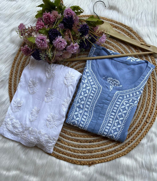 Blue Lucknowi Chikankari Heavy Beautiful Latest Design Modal Kurti
