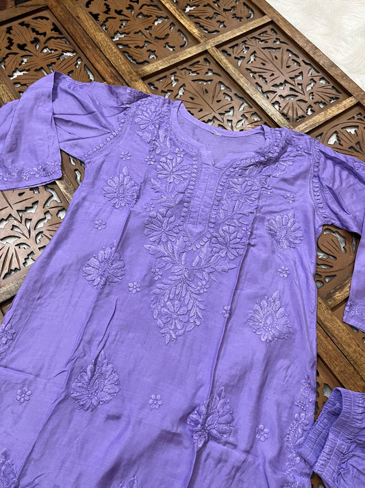 Purple Handcrafted Lucknow Chikankari Muslin Coord Set