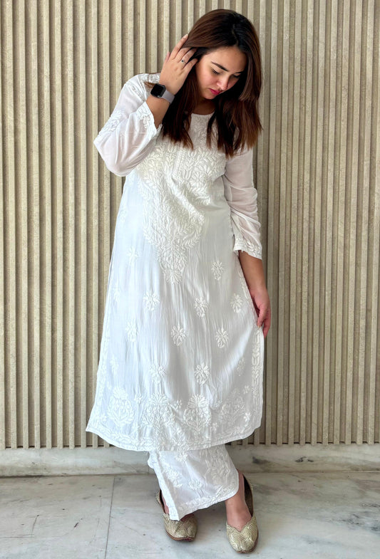 White Chandni Lucknowi Chikankari Modal Palazzo Set