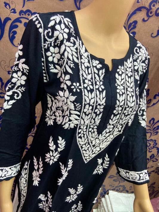 Black Pure Soft Modal Kurti with Finest Quality Intricate Handwork Embroidery Latest Online