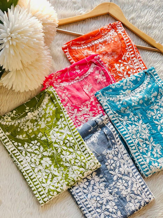 Explore the timeless artistry of Chikankari, a revered embroidery technique originating from Lucknow, India. With delicate threadwork adorning fine fabrics, Chikankari embodies elegance and tradition. Discover the intricate beauty of Chikankari Embroidery, meticulously handcrafted by skilled artisans. From graceful Chikankari Dresses and Kurtis to opulent Sarees and Lehengas, each garment tells a story of heritage and craftsmanship. Elevate your wardrobe with Chikankari Suits and Tops, perfect for both formal affairs and everyday wear. Immerse yourself in the allure of Chikankari Fabrics, from airy cotton to luxurious georgette, offering versatility and sophistication. Experience the timeless charm of Chikankari and indulge in its exquisite craftsmanship.
