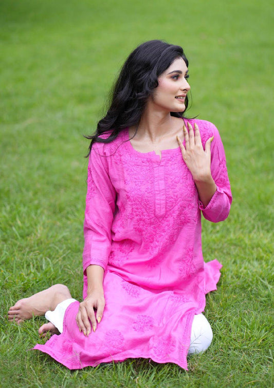 Pink Cutwork Embroidered Kurti with Full Chikan Ghaara Set