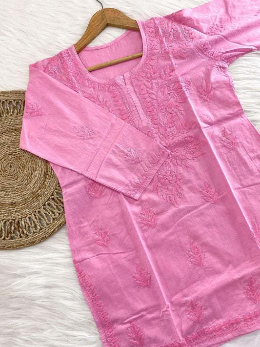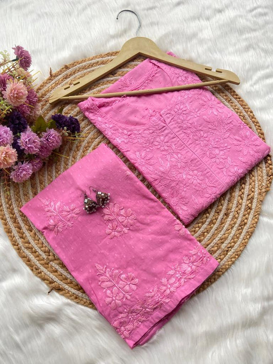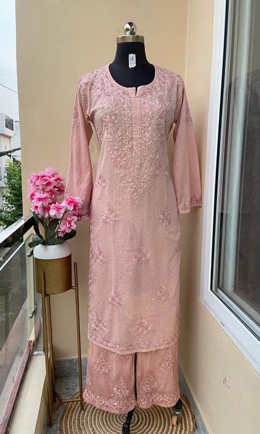 Light Pink Elegant Lucknowi Chikankari Cotton Kurti 3 pc Set