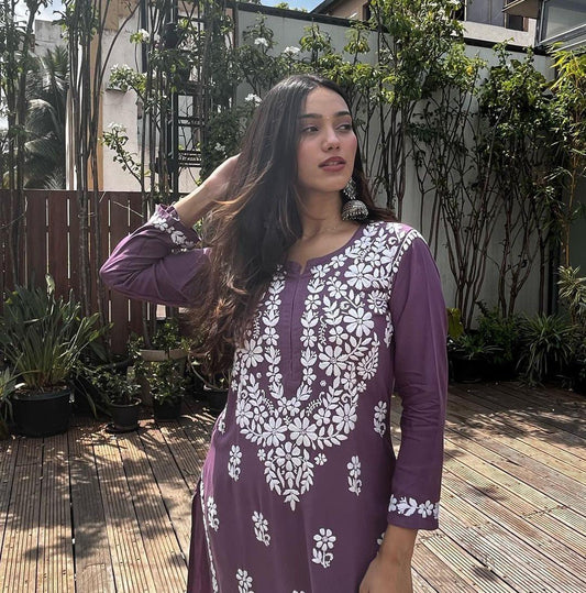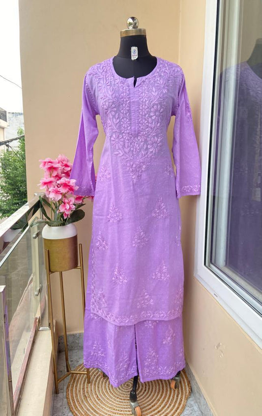 Lavendar Elegant Lucknowi Chikankari Cotton Kurti 3 pc Set