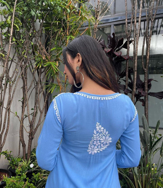 Light Blue Elegant Lucknowi Chikankari Cotton Kurti 3 pc Set