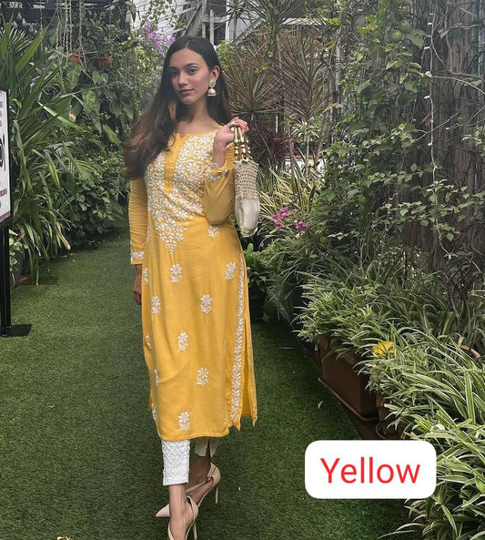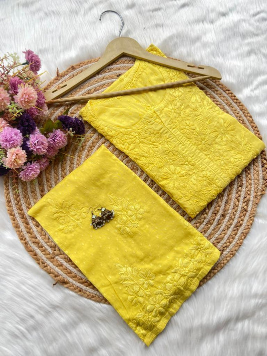 Yellow Elegant Lucknowi Chikankari Cotton Kurti 3 pc Set