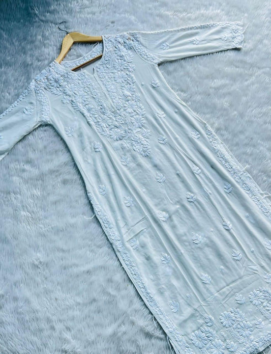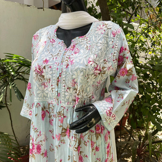 Light Blue Mul Mul Aabroo Gowns Set| Kurti Set
