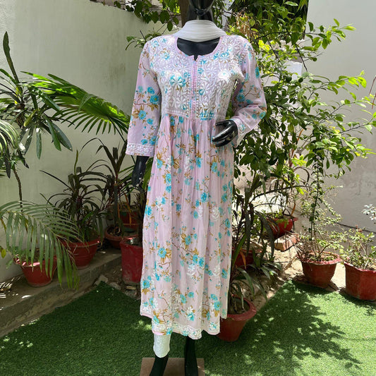 Light Purple Mul Mul Aabroo Gowns Set| Kurti Set