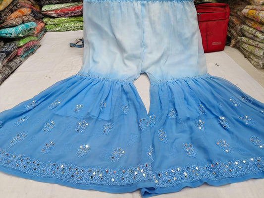 Blue Georgette Kurti Set with Fine Mirror Embroidery Work Shopping Online